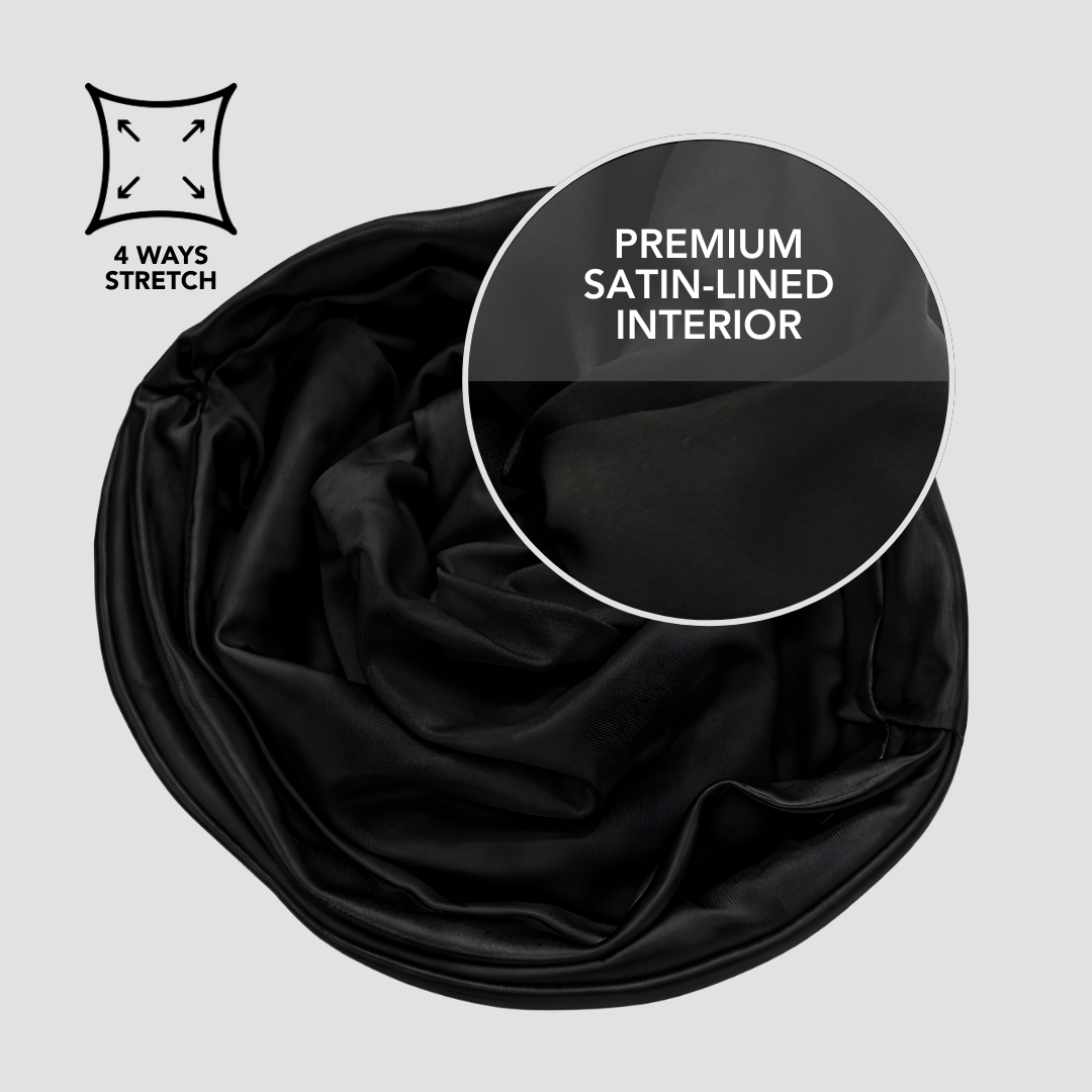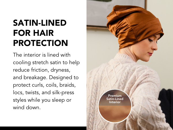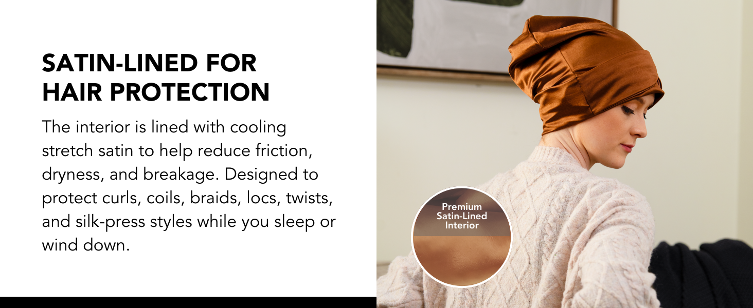 Cooling stretch satin interior helps reduce friction, dryness, and breakage for all hair types.