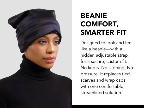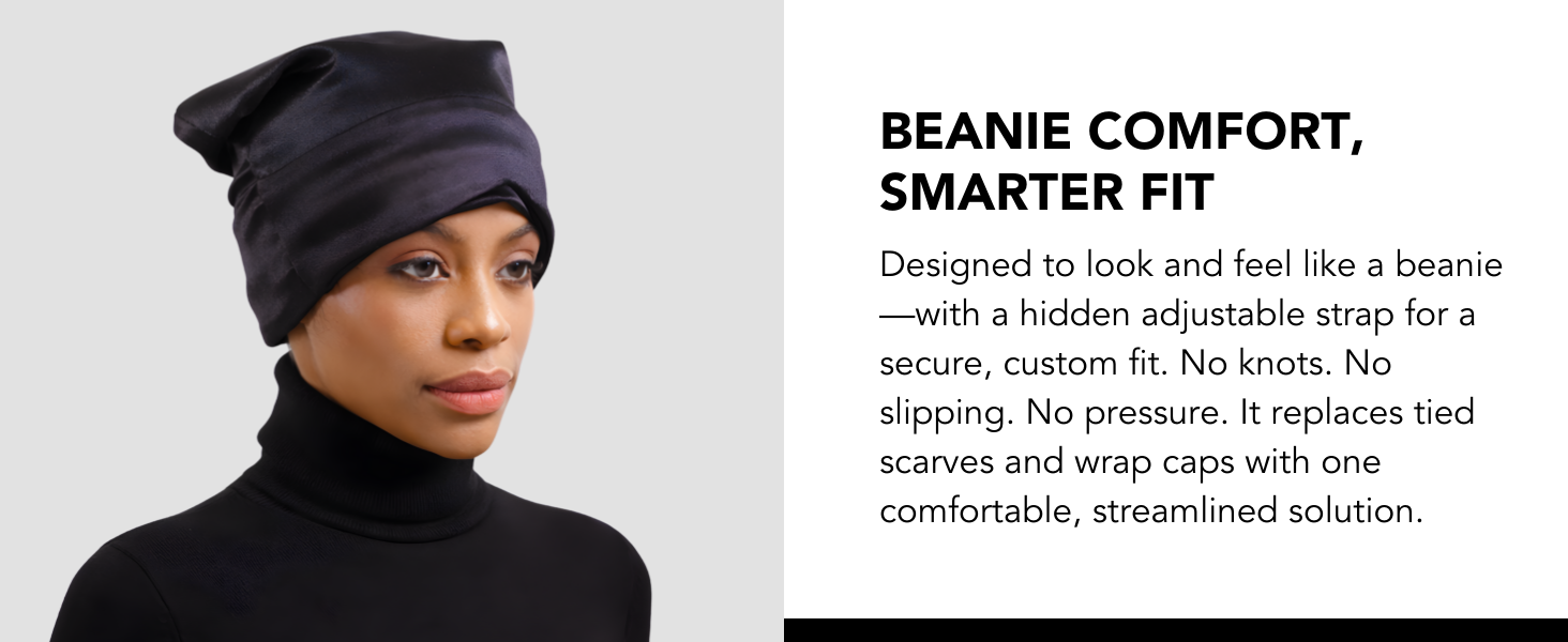 Replaces tied scarves and wrap caps—no knots, no slipping, no pressure. Secures comfortably around your head.