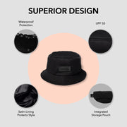 Experience the very best of both fashion and function with Hairbrella's Unisex Bucket Hat. Crafted from 100% waterproof microfiber and boasting a plush satin-lined interior, you'll remain dry and snug in any weather. So gear up with this must-have accessory for the ultimate blend of style and protection!