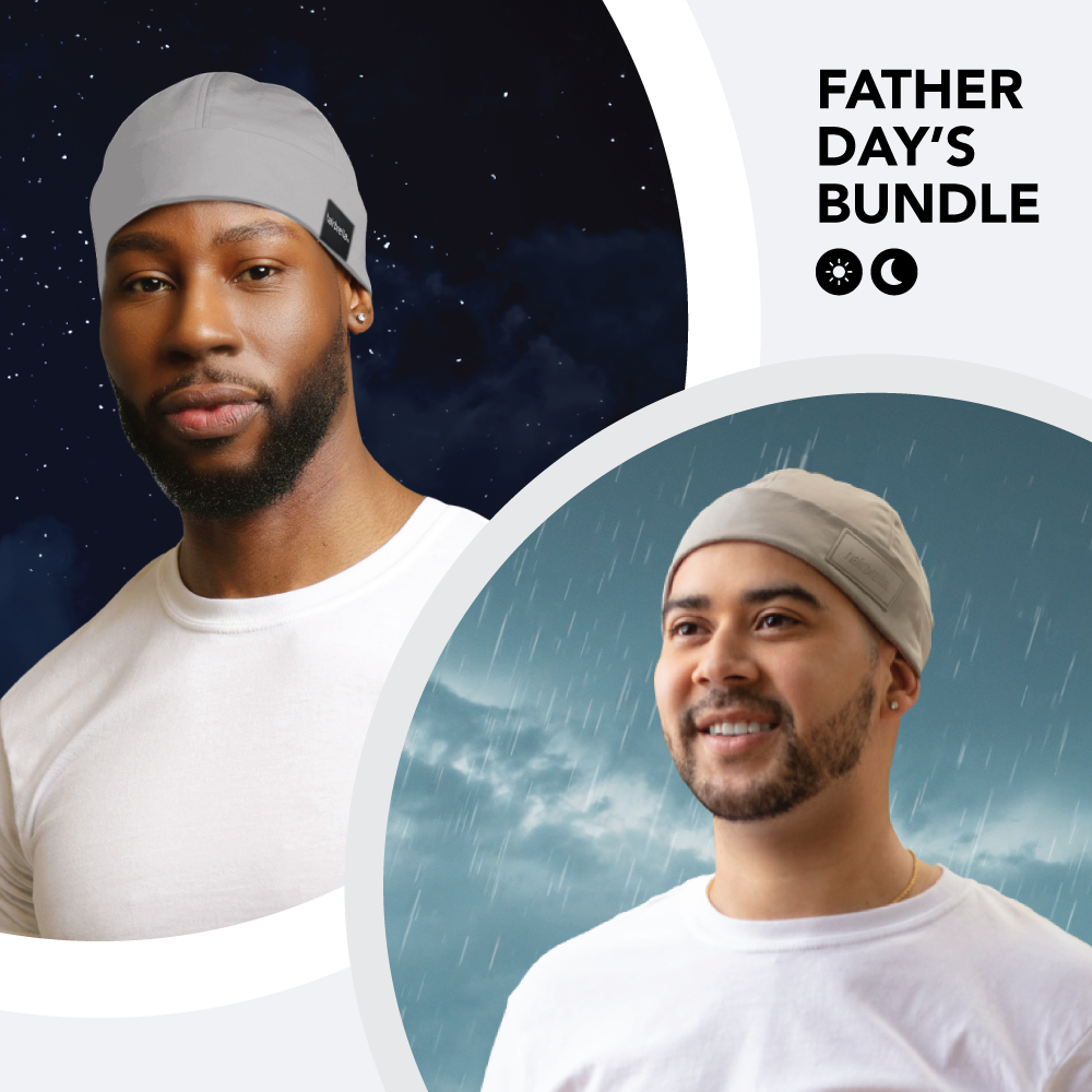 Give your dad the gift of year-round hair protection with our exclusive Hairbrella Father's Day Bundle. This bundle includes two revolutionary products designed to keep dad's hair looking sharp and shielded from the elements: the Men's Satin-Lined Sleep Cap and the Waterproof Satin-Lined Docker Hat.