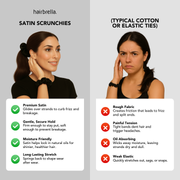 Elevate your hair care and style with Hairbrella Satin Scrunchies, crafted from luxurious satin to provide both a sleek, chic look and ultimate protection for your hair. These scrunchies are designed to offer a gentle, secure hold while reducing frizz, split ends, and breakage, making them ideal for all hair types, from curly to straight, fine to thick.