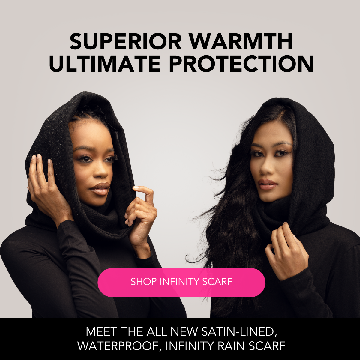 Merging practicality with elegance, the Hairbrella Infinity Rain Scarf is an essential winter accessory that doesn't compromise on style.