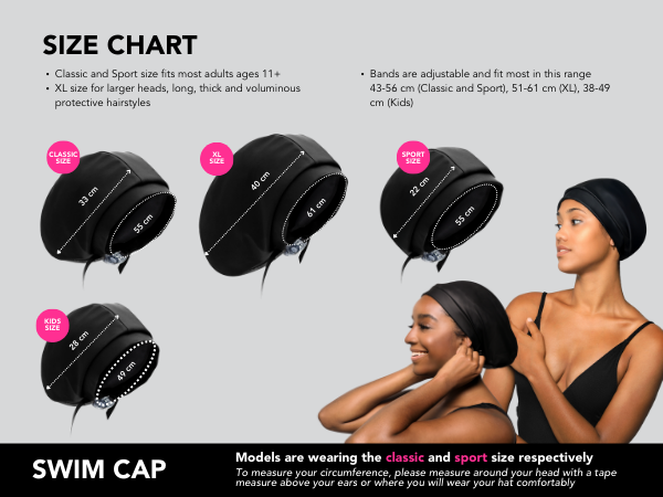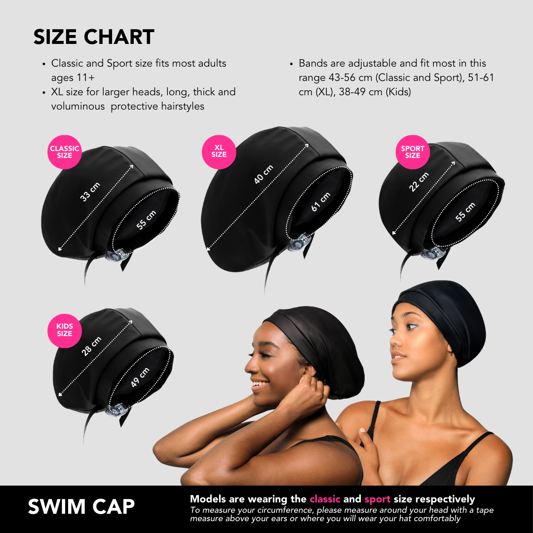 Introducing the world's first satin-lined and adjustable swim cap designed to keep your hair dry and style protected, even underwater!