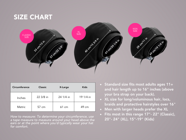 XL size for larger heads, long/thick hair and protective hairstyles 18 inches