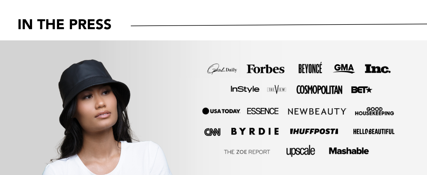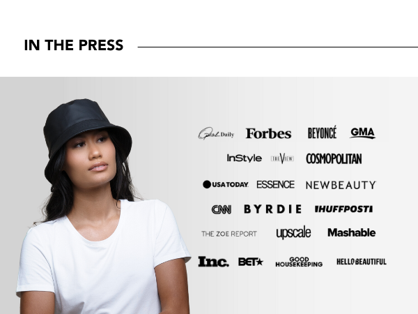 Like all Hairbrella designs, this bucket hat is lined with luxurious satin to reduce friction, minimize frizz, and protect your hair from breakage.